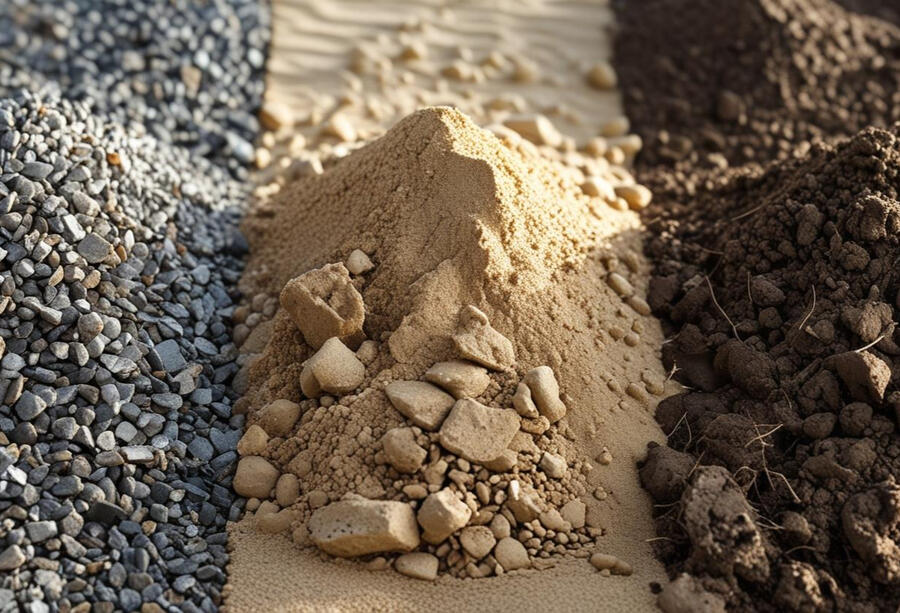 Smėlį, žvyrą, skaldą, juodžemį ir kt.