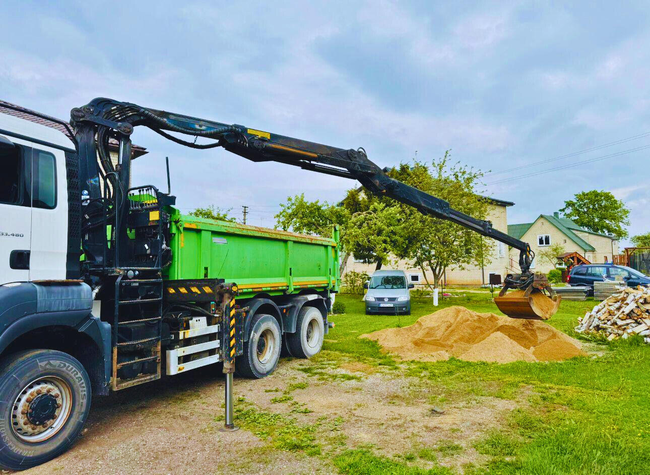 Greitas medžiagų transportavimasTeikiame birių medžiagų pervežimo paslaugas savivarčiu su kranu. Greitai ir saugiai pristatome žvyrą, smėlį, skaldą ar kitas medžiagas į Jūsų objektą. Taip pat vežame medžių kelmus, žaliąsias atliekas ar statybinius likučius – pasitarkime dėl tinkamiausio sprendimo.
